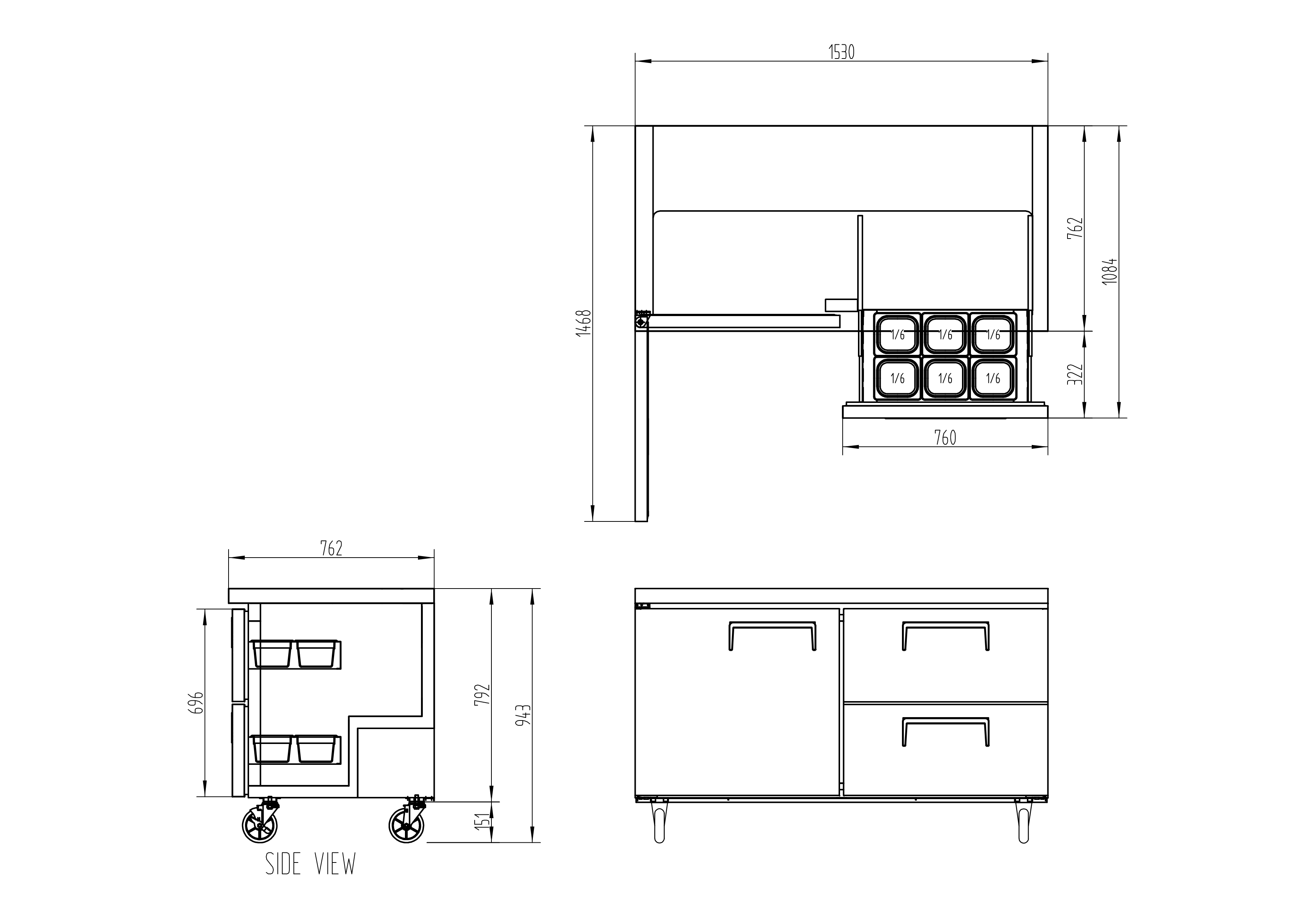 平面台大单门双抽屉冷藏柜 Big single door Drawer-Undercounter-refrigerator